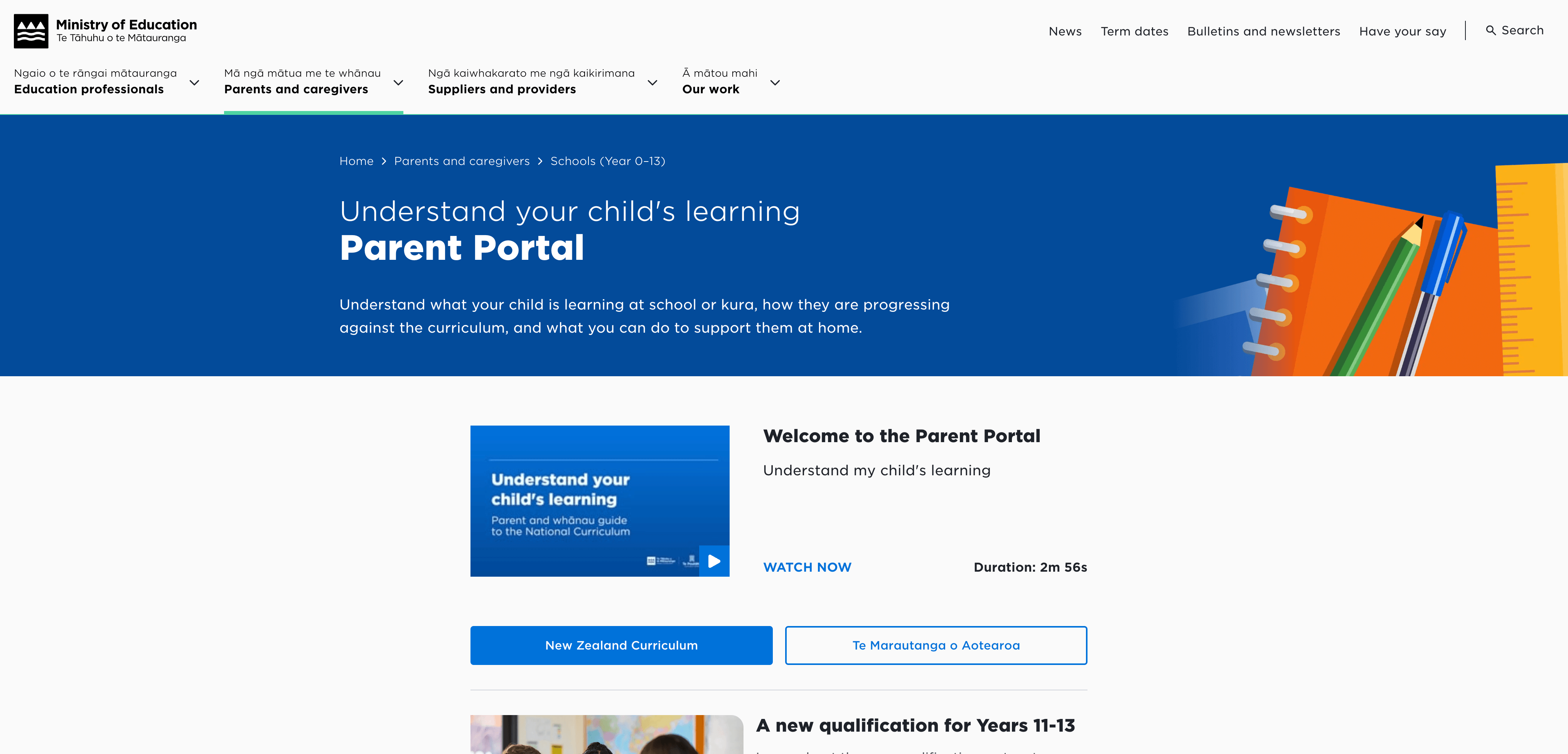 The Parent Portal is a Ministry of Education hub designed to help families support their child’s learning from Years 0–13. It provides simple, year-by-year guides to the New Zealand curriculum, practical at-home activities, and tools to help parents stay informed and engaged with their child’s progress at school.